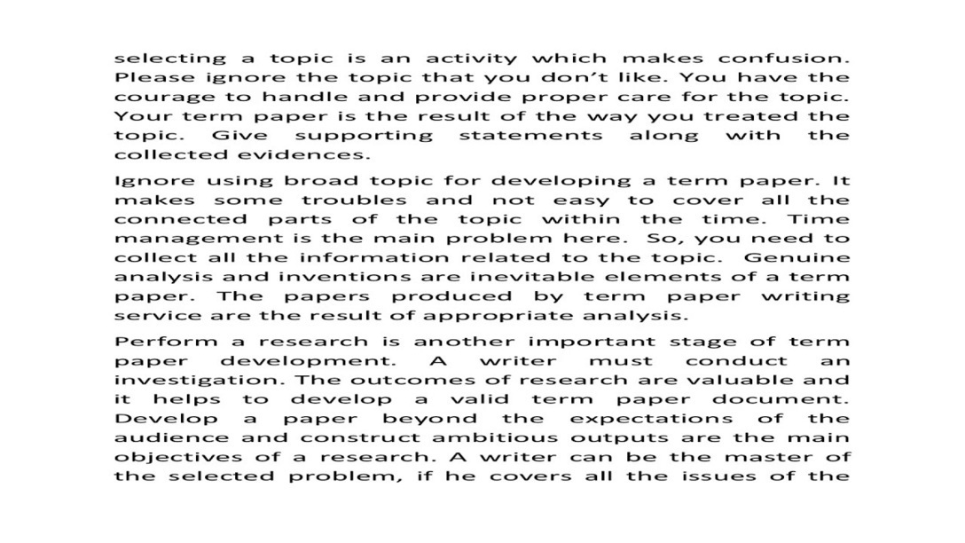 Paper Writing Service We want to make sure you get exactly what you need with our service, so you can share any files with your assigned writer. This ensures the writer has all information needed to create unique content that will meet all your expectations. To share a file, select Files from your profile and upload the file Do you want the best term paper topics ? We have compiled a list for you. Here it goes: Education 1. An analysis of discrimination in college education in the United States. 2. National standardized tests do not reflect the intelligence of college students. 3. Should corporal punishment be permitted in schools in the United States? 4 It can take anywhere between two months to a year to write a proper research paper at this level. Many students procrastinate on the research paper writing until the last month (or even the last week). In such cases, a Research Paper Service online can be a true blessing for students. Many research paper writing services are available online
